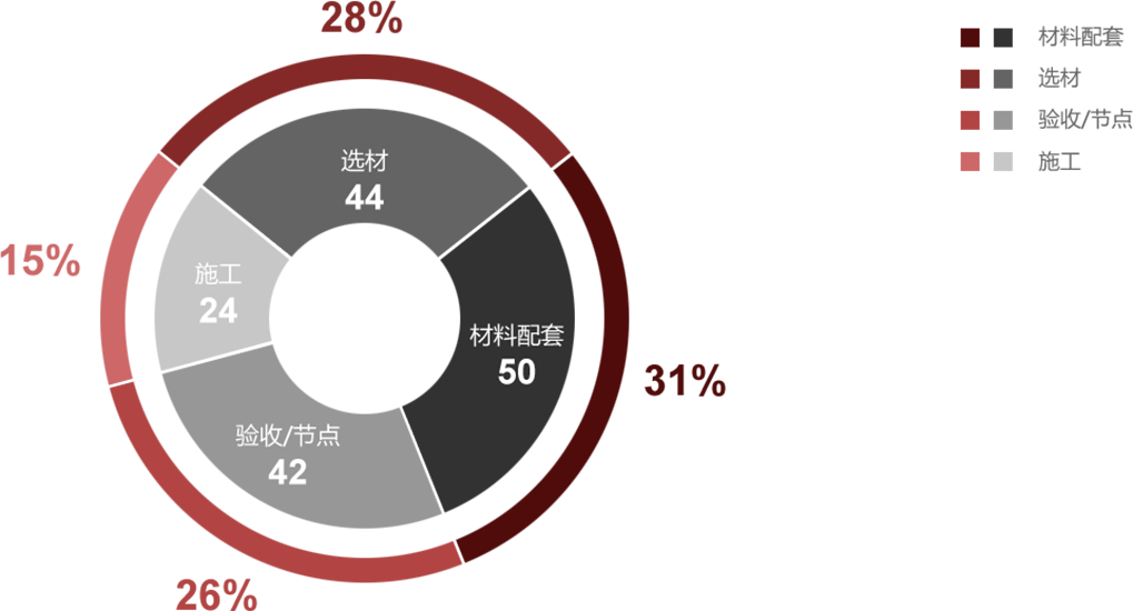 其次是验收,绝大多数的装修公司的验收,只分三次,水电验收、泥木验收、竣工验收。每次验收时,区区数十分钟,即验收通过。这也是很多客户对装饰公司不放心,主张第三方监理的原因之一橙造就每个工程不低于28次的分项验收,可分为材料、分项、节点、材料四个方面。我们的施工计划表中,验收与节点占到了26%,穿插好每一个验收于施工进度之中,是考验一家装饰公司施工组织的能力。